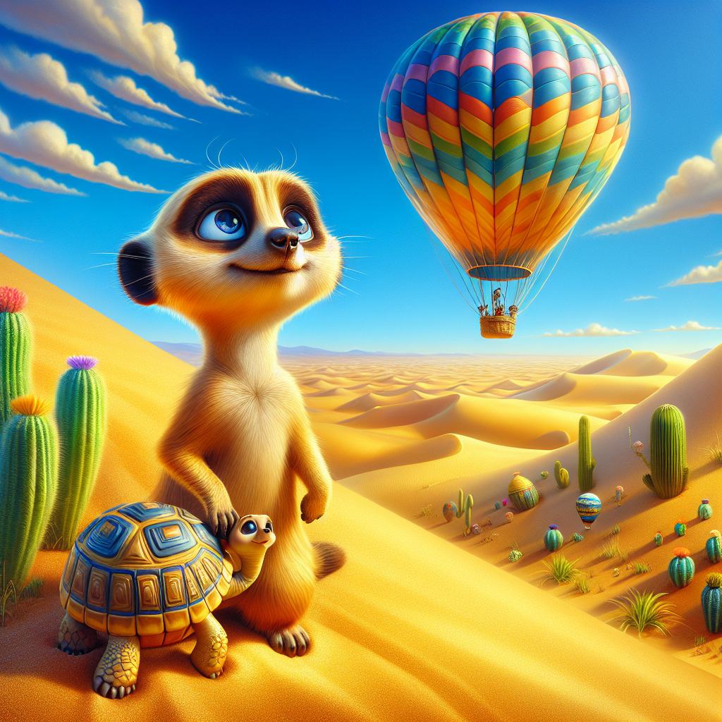 Il était une fois, dans un grand désert chaud et doré, un petit suricate nommé Kit Kat. Kit Kat était un suricate intrépide et curieux. Chaque jour, il observait le vaste ciel bleu et rêvait de voir le monde depuis les airs. Un matin, il remarqua une belle montgolfière colorée qui flottait au-dessus du désert.“Oh là là!” s’exclama Kit Kat. “J’aimerais tant monter dans cette montgolfière et voir le monde d’en haut!”Soudain, une voix douce s’éleva. C’était une vieille tortue sage qui passait par là. “Bonjour, Kit Kat! Que fais-tu?” demanda-t-elle. Kit Kat lui raconta son rêve. La tortue sourit et dit: “Si tu veux, je peux t’aider! Il te suffit de croire et de demander.”Kit Kat, tout excité, se mit à sauter sur place. “Je te demande de m’aider! Que dois-je faire?” La tortue lui répondit: “Va vers la montgolfière et dis-lui que tu es prêt à vivre une grande aventure!”Avec courage, Kit Kat courut vers la montgolfière. “Bonjour, chère montgolfière! Je suis Kit Kat et je souhaite voir le monde! Acceptes-tu de m’emmener?” La montgolfière, avec ses belles couleurs, commença à balancer. Puis, elle répondit: “Si tu es prêt, grimpe à bord et envois tes rêves vers les cieux!”Kit Kat grimpa dans la montgolfière. Quand elle s’éleva dans le ciel, il se mit à voir le désert s’étendre sous ses pattes. Il aperçut des dunes dorées, des cactus verts et des animaux jouant au soleil. Quel bonheur! Il flottait comme un nuage tout doux!En montant toujours plus haut, Kit Kat put voir des montagnes majestueuses, des rivières scintillantes et des forêts denses. Chaque paysage lui faisait pousser des ‘Wouah!’ d’émerveillement. Il rencontra même d’autres animaux, tels que des oiseaux chantants et des poissons dans des lacs brillants. Chacun lui faisait un coucou en passant.Après un long voyage, Kit Kat rentra chez lui, le cœur plein de souvenirs magiques. Il remercia la montgolfière avec un grand sourire. “Merci, chère montgolfière, pour ce merveilleux voyage!” La montgolfière dut sourire, bien qu’elle ne puisse pas parler, car elle savait qu’elle avait réalisé le rêve de Kit Kat.De retour au désert, Kit Kat se mit à raconter ses aventures à tous ses amis. Ils l’écoutaient avec des yeux ronds, complètement émerveillés. Grâce à lui, tout le monde apprit qu’il est important de rêver grand et d’avoir le courage de poursuivre ses rêves.Et ainsi, Kit Kat le suricate intrépide devint un héros dans son désert, toujours prêt à partager ses aventures du ciel et à encourager les autres à rêver à leur tour.Moralité: