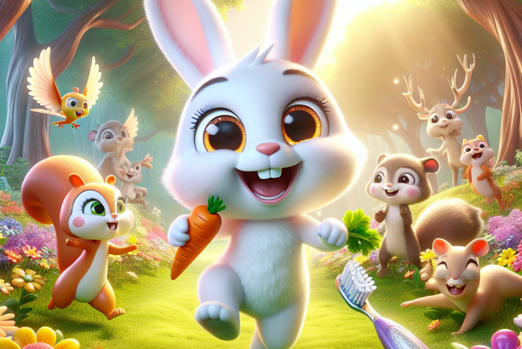 Il était une fois, dans une jolie petite forêt, un lapin nommé Lapinou. Lapinou était un lapin très joyeux, mais il avait un petit défaut : il ne voulait jamais se laver les dents ! Chaque matin, sa maman lui disait : « Lapinou, c’est important de se laver les dents ! » Mais Lapinou répondait toujours : « Non, maman, je n’en ai pas besoin ! »Un jour, après avoir grignoté quelques carottes sucrées et des fraises délicieuses, Lapinou ne se lava pas les dents comme d’habitude. Il joua avec ses amis tous l’après-midi, s’amusant à sauter et à gambader. Mais au fur et à mesure que la journée avançait, il commença à sentir quelque chose de bizarre dans sa bouche.« Aïe ! » s’écria-t-il. Lapinou toucha sa dent de devant et sentit quelque chose de dur. Il se mit à pleurer. « Qu’est-ce qu’il m’arrive ? » demanda-t-il à son ami le petit écureuil.Le petit écureuil, curieux, s’approcha et dit : « Peut-être que tu devrais demander à ta maman, Lapinou. Peut-être qu’il est temps de te laver les dents ! » Lapinou se mit à réfléchir. Il avait toujours refusé de se laver les dents, mais maintenant, il avait peur d’avoir mal.Puis, Lapinou décida d’aller voir sa maman. Sur le chemin, il se rappela de tous les bons moments qu’il avait partagés avec ses amis. Les rires, les jeux et même les délicieuses carottes ! Quand il arriva auprès de sa mère, il lui expliqua avec des larmes dans les yeux : « Maman, j’ai mal ! Je crois que je devrais me laver les dents. »Sa maman le prit dans ses bras et lui dit : « Tu vois, Lapinou, se laver les dents est très important. Ça aide à garder tes dents en bonne santé et à éviter les douleurs. » Alors, ensemble, ils se rendirent à la salle de bains. Lapinou prit sa brosse à dents et, avec l’aide de sa maman, il se lava les dents avec beaucoup d’attention.À la fin, Lapinou se regarda dans le miroir et découvrit un grand sourire tout brillant. Il se sentit tellement mieux ! « Merci, maman, je vais me laver les dents tous les jours maintenant ! » dit-il tout content.Depuis ce jour, Lapinou ne se fit plus jamais prier pour se laver les dents. Il avait compris que prendre soin de ses dents, c’était aussi prendre soin de son plaisir à manger des carottes et à jouer avec ses amis.Moralité: