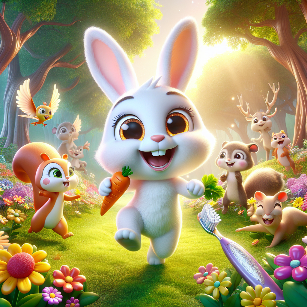 Il était une fois, dans une jolie petite forêt, un lapin nommé Lapinou. Lapinou était un lapin très joyeux, mais il avait un petit défaut : il ne voulait jamais se laver les dents ! Chaque matin, sa maman lui disait : « Lapinou, c’est important de se laver les dents ! » Mais Lapinou répondait toujours : « Non, maman, je n’en ai pas besoin ! »Un jour, après avoir grignoté quelques carottes sucrées et des fraises délicieuses, Lapinou ne se lava pas les dents comme d’habitude. Il joua avec ses amis tous l’après-midi, s’amusant à sauter et à gambader. Mais au fur et à mesure que la journée avançait, il commença à sentir quelque chose de bizarre dans sa bouche.« Aïe ! » s’écria-t-il. Lapinou toucha sa dent de devant et sentit quelque chose de dur. Il se mit à pleurer. « Qu’est-ce qu’il m’arrive ? » demanda-t-il à son ami le petit écureuil.Le petit écureuil, curieux, s’approcha et dit : « Peut-être que tu devrais demander à ta maman, Lapinou. Peut-être qu’il est temps de te laver les dents ! » Lapinou se mit à réfléchir. Il avait toujours refusé de se laver les dents, mais maintenant, il avait peur d’avoir mal.Puis, Lapinou décida d’aller voir sa maman. Sur le chemin, il se rappela de tous les bons moments qu’il avait partagés avec ses amis. Les rires, les jeux et même les délicieuses carottes ! Quand il arriva auprès de sa mère, il lui expliqua avec des larmes dans les yeux : « Maman, j’ai mal ! Je crois que je devrais me laver les dents. »Sa maman le prit dans ses bras et lui dit : « Tu vois, Lapinou, se laver les dents est très important. Ça aide à garder tes dents en bonne santé et à éviter les douleurs. » Alors, ensemble, ils se rendirent à la salle de bains. Lapinou prit sa brosse à dents et, avec l’aide de sa maman, il se lava les dents avec beaucoup d’attention.À la fin, Lapinou se regarda dans le miroir et découvrit un grand sourire tout brillant. Il se sentit tellement mieux ! « Merci, maman, je vais me laver les dents tous les jours maintenant ! » dit-il tout content.Depuis ce jour, Lapinou ne se fit plus jamais prier pour se laver les dents. Il avait compris que prendre soin de ses dents, c’était aussi prendre soin de son plaisir à manger des carottes et à jouer avec ses amis.Moralité: