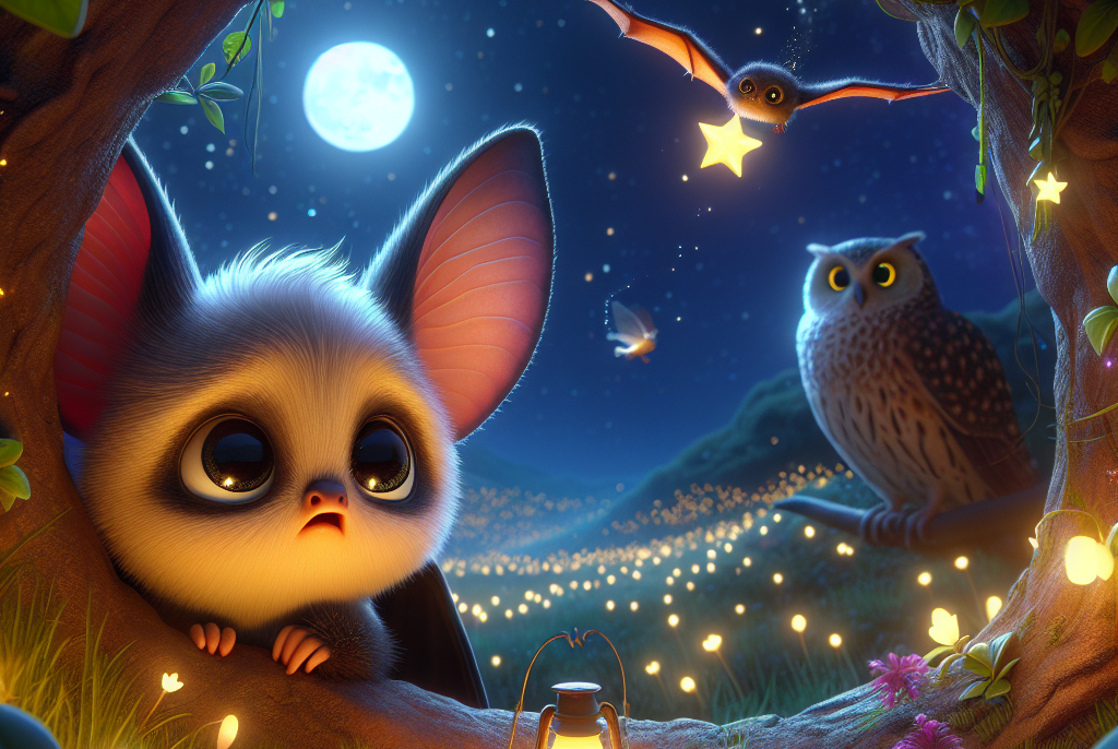 Il était une fois, dans une caverne sombre, une petite chauve-souris nommée Gloupsy. Gloupsy était différente des autres chauves-souris. Tandis que ses amis adoraient virevolter dans l’obscurité, elle avait très peur du noir. Chaque fois que la nuit tombait, elle se cachait sous une feuille, tremblante de peur.